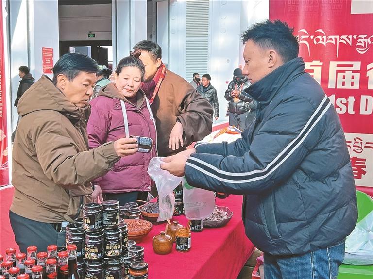 圖為市民在博覽會上選購辣椒醬。本報記者 央金 攝