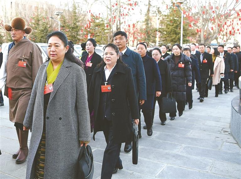 上午8時許,來自全區(qū)各行各業(yè)、各條戰(zhàn)線的人大代表們,身著正裝或民族服飾,意氣風(fēng)發(fā)奔赴會場。