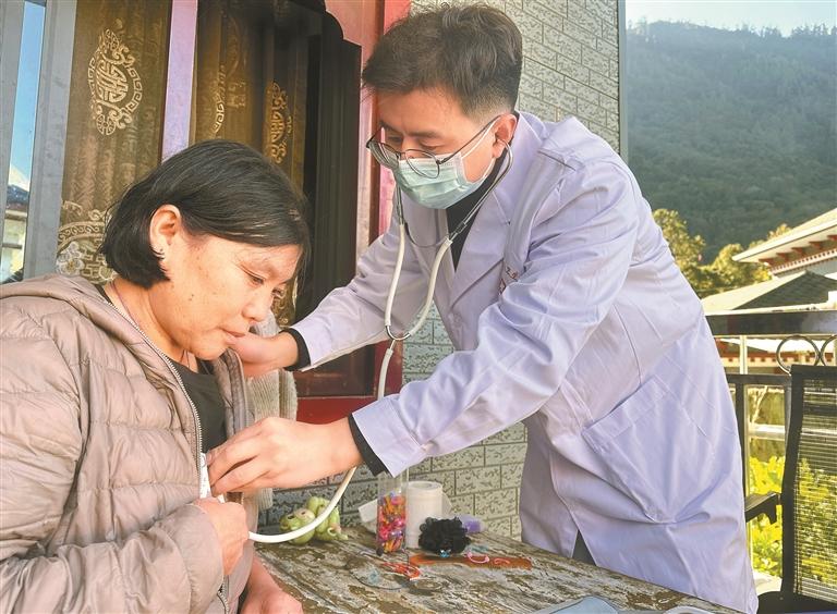 圖為林芝市墨脫縣格當(dāng)鄉(xiāng)衛(wèi)生院的醫(yī)生入戶為群眾開展診療服務(wù)。本報記者 王敏 本報通訊員 郎玲 攝