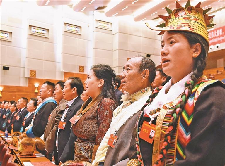 首頁 / 新聞 / 涉藏新聞 / 西藏 / 正文 兩會現(xiàn)場 來源 : 西藏日報 作者 : 洛桑 發(fā)布時間 : 2026-02-04 字體 :小 中 大 圖為代表們齊聲高唱國歌。本報記者 洛?!z中國藏族網(wǎng)通訊 2月3日下午,西藏自治區(qū)十二屆人大四次會議圓滿完成各項議程在拉薩閉幕。 編輯 : 拉專措