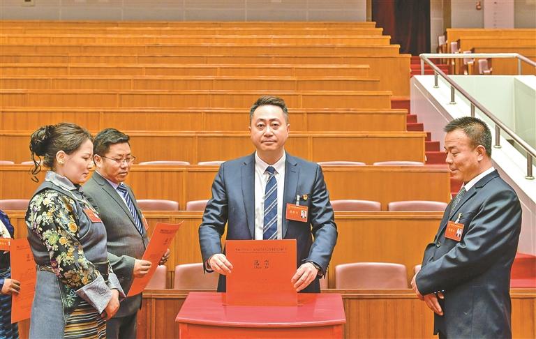 人大代表正在投票。本報(bào)記者 丹增群培 攝
