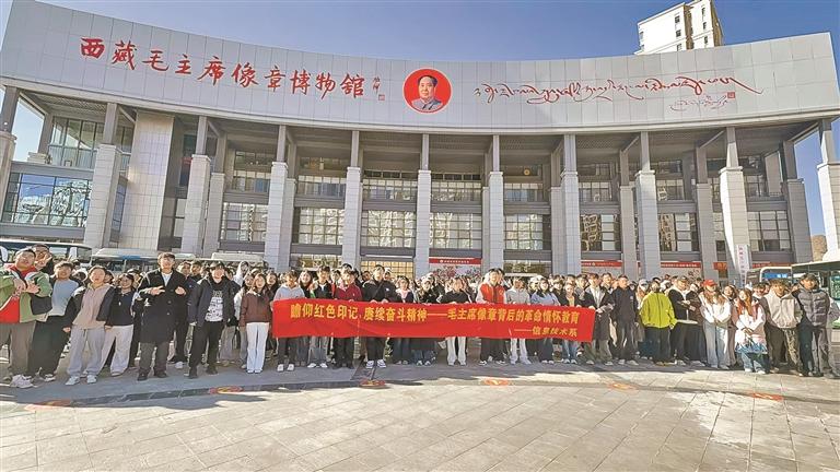 拉薩師范學(xué)院學(xué)生在西藏毛主席像章博物館門口合影。本報記者 劉斯宇 攝