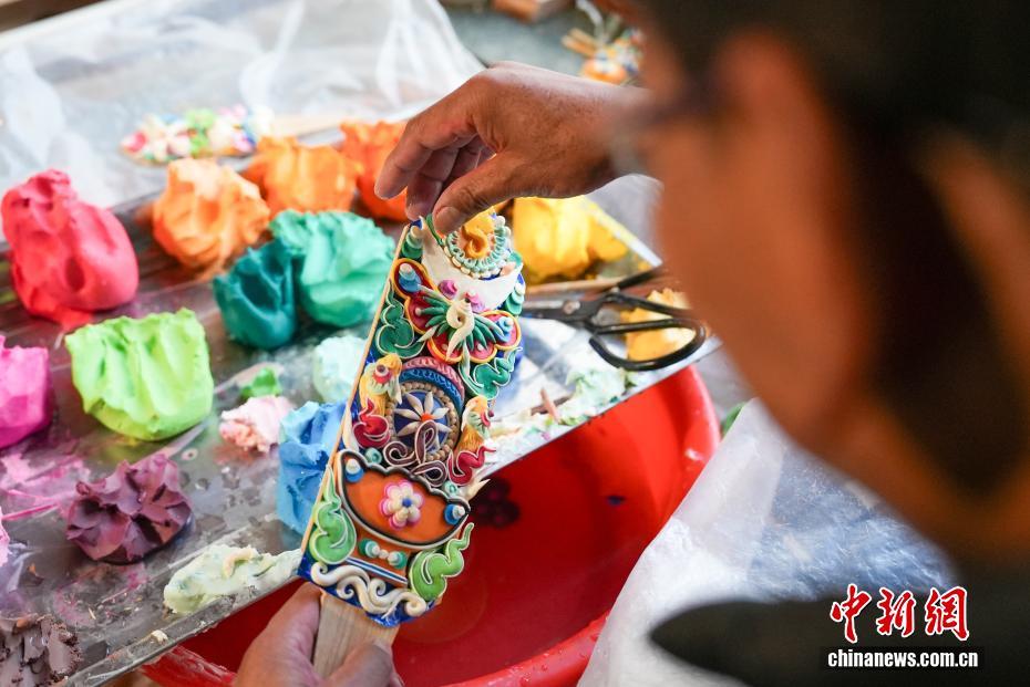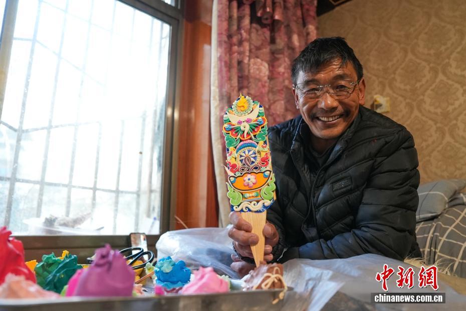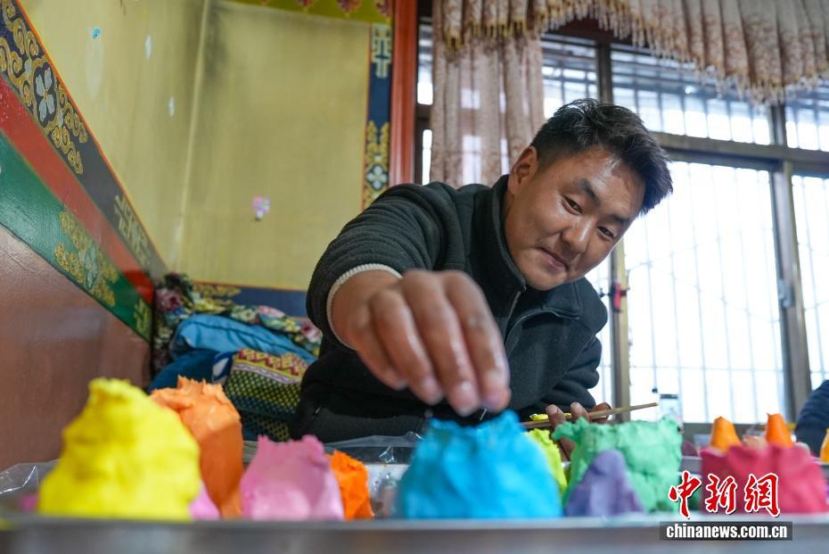 2月4日,隨著藏歷新年臨近,拉薩街頭年味漸濃,年貨市場(chǎng)上的“孜扎”迎來(lái)熱銷(xiāo)。酥油花藏語(yǔ)稱(chēng)“孜扎”,是藏歷新年吉祥物切瑪盒的重要組件,也是藏族民眾家中必備的年貨。酥油花以酥油為主要原料,由匠人純手工捏制而成,造型涵蓋佛像、人物、花卉樹(shù)木、飛禽走獸等,常見(jiàn)圖案包含吉祥八寶、和諧四瑞、長(zhǎng)壽圖等,承載著藏族民眾對(duì)新年平安吉祥、萬(wàn)事順?biāo)斓拿篮闷碓?。圖為手工藝人在制作酥油花。貢確 攝
