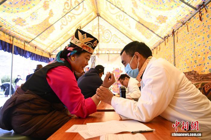 圖為達(dá)普天文觀測臺年度觀測活動現(xiàn)場,西藏自治區(qū)藏醫(yī)院的專家為村民免費義診。貢嘎來松 攝