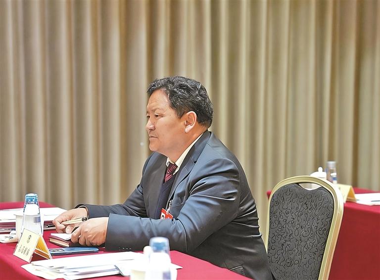 圖為全國政協(xié)委員扎西頓珠。本報記者 陶玥 攝