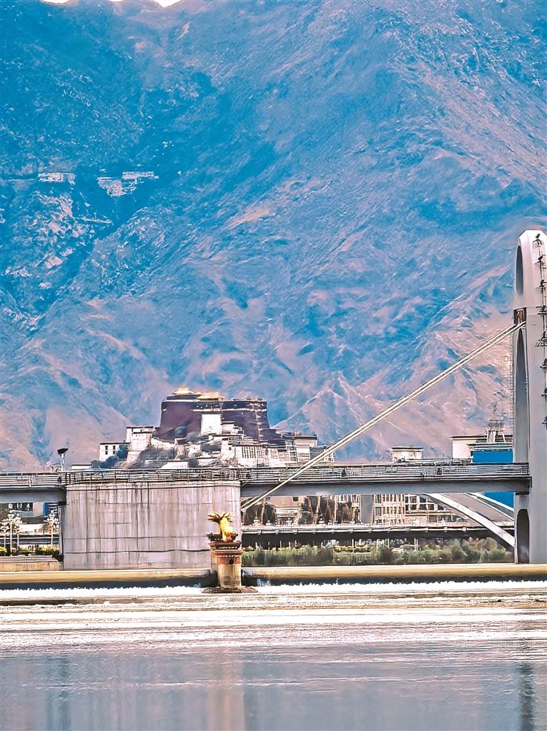 圖為拉薩河特大橋旁遙望布達(dá)拉宮。