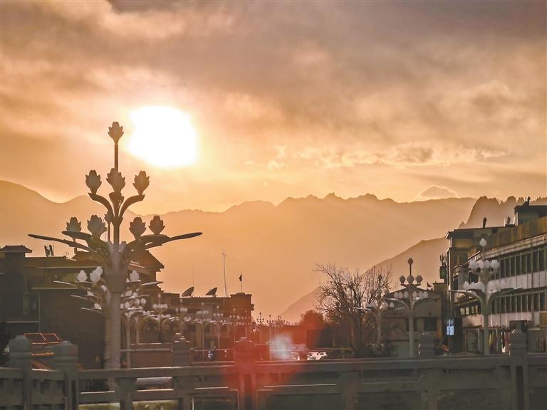 當(dāng)夕陽的最后一抹余暉染紅天際,拉薩迎來了一天中最動人的時刻。金色的霞光如同融化的金子,從山巒間緩緩傾瀉,為遠(yuǎn)處的山脊、城市的街道、錯落的建筑鍍上一層溫暖的光暈。暮色漸濃,煙火氣依舊綿長,這抹落日余暉,是一天忙碌生活的溫柔收尾,也是夜晚靜謐時光的溫柔序曲,讓“日光城”的黃昏,永遠(yuǎn)帶著治愈人心的力量,藏著說不盡的溫柔與美好。