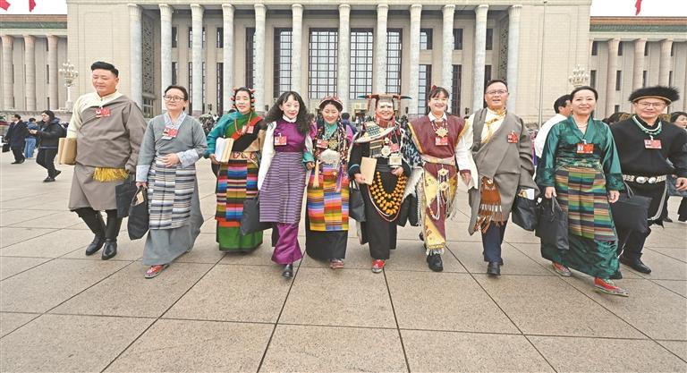 3月11日,西藏代表團(tuán)舉行全體會議。我區(qū)全國人大代表在會前熱烈討論。