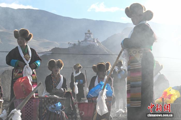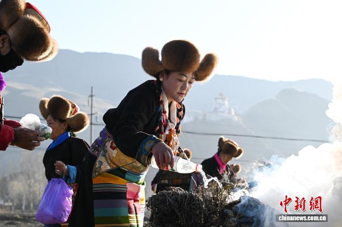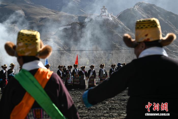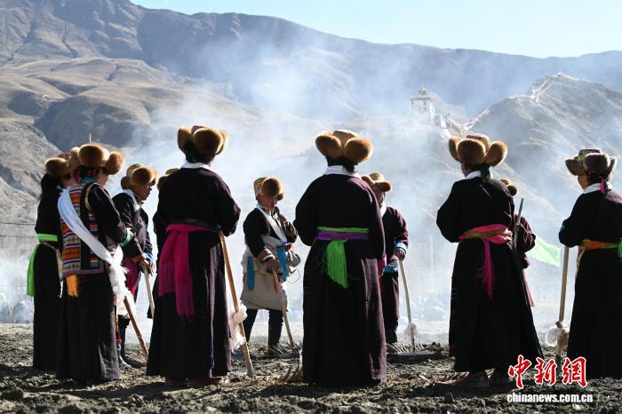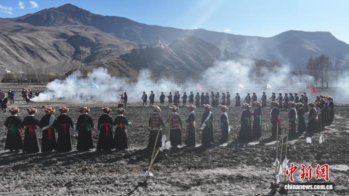 圖為西藏山南市乃東區(qū)門中崗社區(qū)春耕儀式現(xiàn)場(chǎng)。中新社記者 貢嘎來(lái)松 攝
