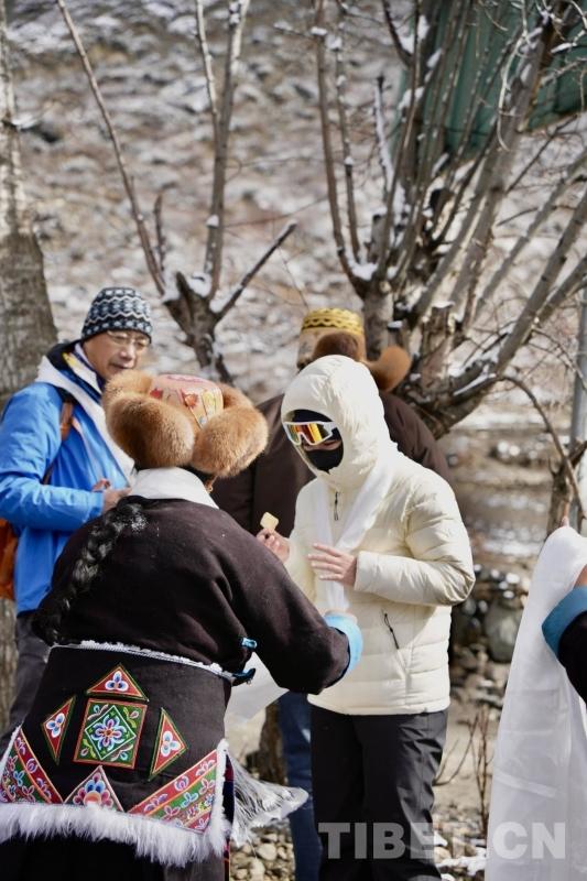 村民們向遠方的客人獻上哈達,邀請他們一同品嘗卡塞,共飲青稞酒。田埂上,大家一起載歌載舞,笑聲與歌聲交織,驅散了清晨的寒意?!?/p>
