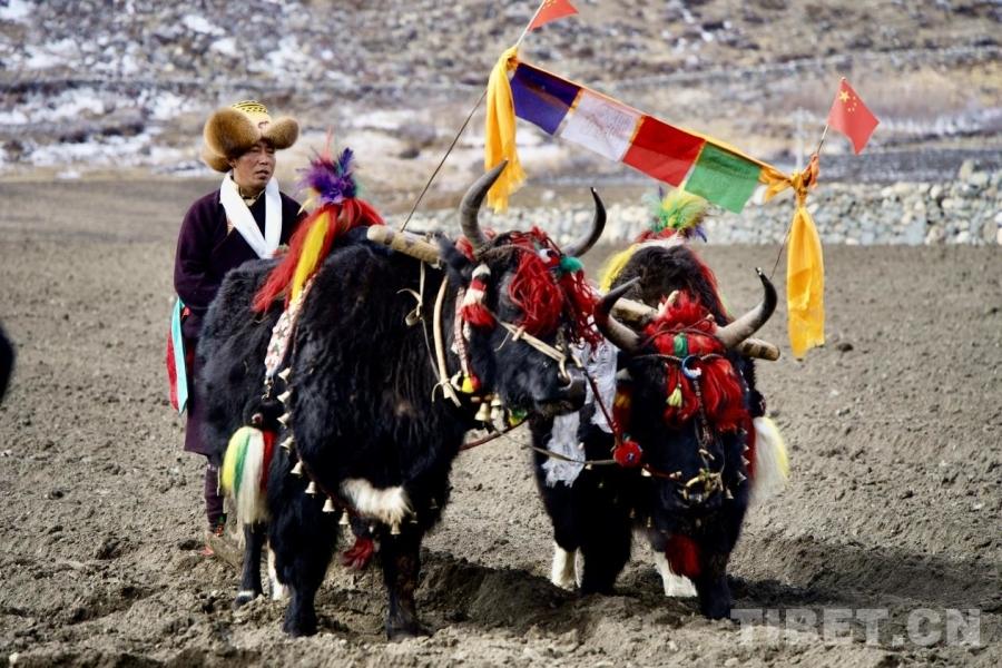 循聲而至的游客們,恰好撞見了這場高原春日里最盛大的農事慶典。村民們身著節(jié)日盛裝,手捧潔白的哈達、象征吉祥的“切瑪盒”,牽著頭戴紅纓的耕牛,緩緩走向田野。這是西藏傳統(tǒng)天文歷算擇定的吉日,也是高原人家對豐收最美的愿望?!?/p>