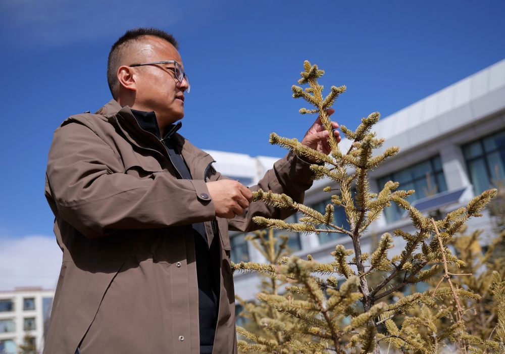3月20日上午10點30分,扎西像往常一樣來到市科技局的院子里,仔細(xì)查看樹木的長勢。他彎腰伸手,摸了摸樹的葉子和枝條,又踩了踩樹下的土壤?!霸蕉闆r總體穩(wěn)定,也有了返青跡象,可以開始澆水、施肥了。”扎西欣喜地說。