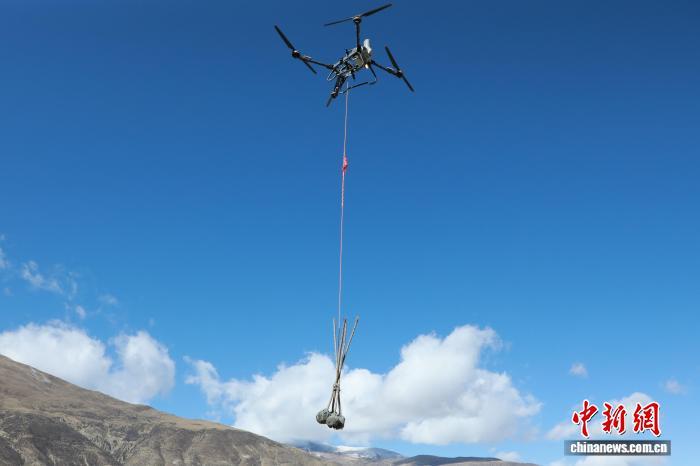 圖為無人機運苗。山南市委宣傳部 供圖