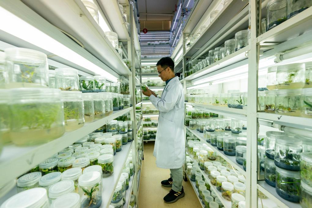 中國(guó)西南野生生物種質(zhì)資源庫(kù)工作人員在查看植物離體種質(zhì)材料(2023年9月27日攝)。新華社記者 陳欣波 攝