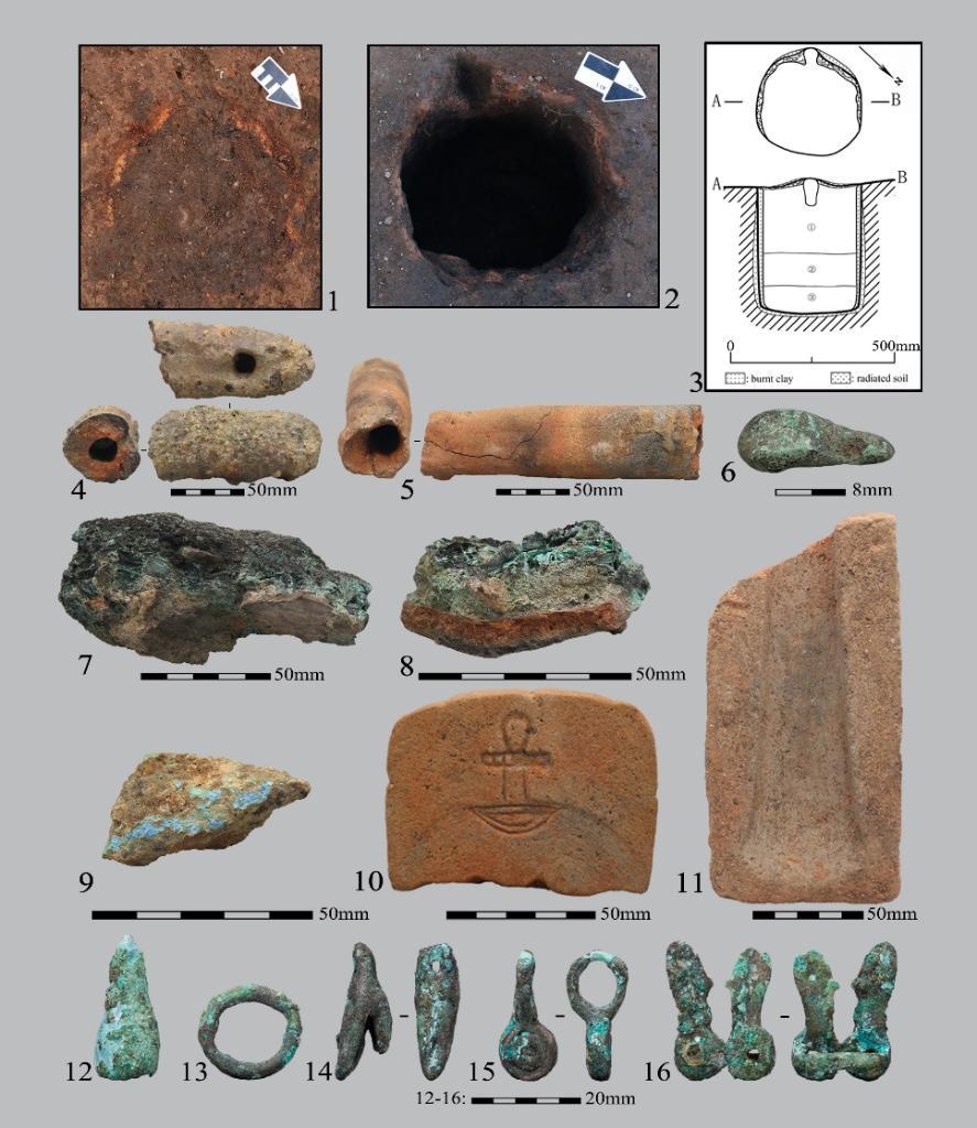 為厘清這一問題,研究人員開展了持續(xù)研究工作,并在滇西北維西吉岔遺址發(fā)掘中取得重要進展。論文共同作者、云南省文物考古研究所副研究員胡長城介紹,考古工作完整揭露出新石器時代晚期至鐵器時代早期聚落遺址,發(fā)現了冶金生產區(qū),清理了多座地穴式熔爐,出土坩堝、煉渣等相關遺物。尤其是吉岔遺址二期遺存(公元前1600年至公元前1200年)出現的西北地區(qū)青銅時代黑彩彩陶,為該區(qū)域早期青銅時代提供了重要年代標尺。
