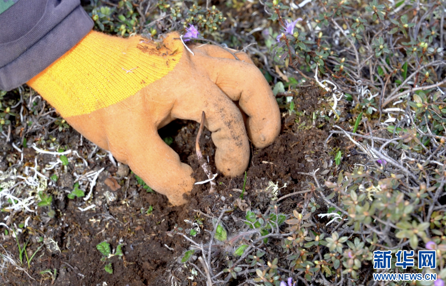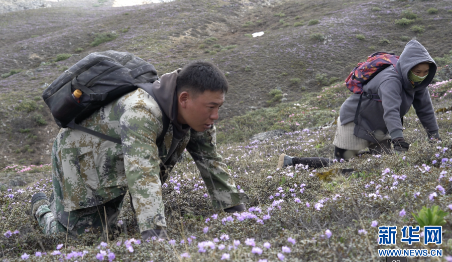 據(jù)介紹,挖蟲草是一件非常辛苦的工作,把蟲草從土里挖出來并不困難,但要找到它們猶如大海撈針。在挖蟲草時,很多人或蹲或側(cè)臥在山坡上,臉貼著地面,一點一點挪動著身子找蟲草。在當(dāng)?shù)厝丝磥恚衩氐拇笊皆杏讼x草,也培養(yǎng)了“蟲草人”吃苦耐勞的精神品質(zhì)?!跋x草人”的身影年復(fù)一年地出現(xiàn)在美麗的高原上,續(xù)寫與蟲草之間的故事。