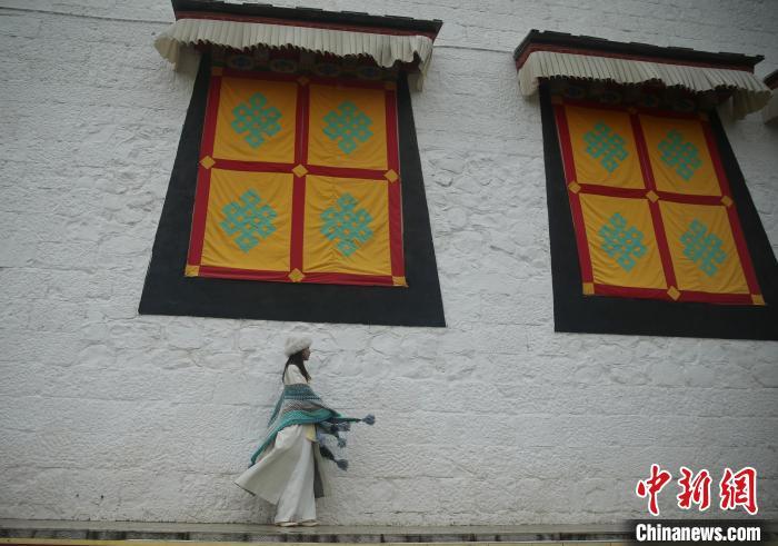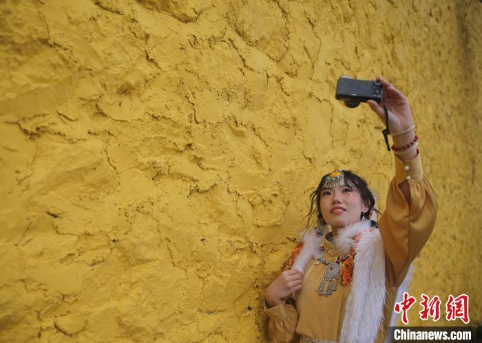7月2日,游客身著藏裝打卡松贊林寺。中新社記者 黃興鴻 攝