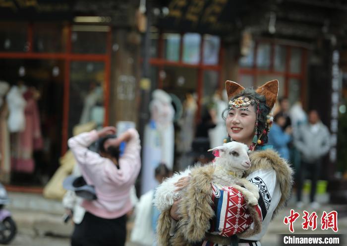 7月2日,游客身著藏裝游覽獨(dú)克宗古城。中新社記者 黃興鴻 攝