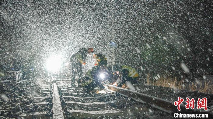 夜里,氣溫驟降,大雪紛飛。陳永祥手持道尺,穿梭在雪幕之中。他用雙手擦去鋼軌頂部的積雪,仔細(xì)測量線路的幾何偏差。每走幾步,他都會在軌枕上標(biāo)注出軌距水平,為后續(xù)改道作業(yè)提供精準(zhǔn)的調(diào)整數(shù)值?!拔襾砗藢Τ叽纾蹰L煜負(fù)責(zé)螺栓松緊,李晨現(xiàn)場防護(hù)?!彪S著作業(yè)命令的下達(dá),陳永祥的話語在冷風(fēng)中格外堅(jiān)定。他們深知,每一次作業(yè)都關(guān)乎列車的安全運(yùn)行,容不得半點(diǎn)馬虎。