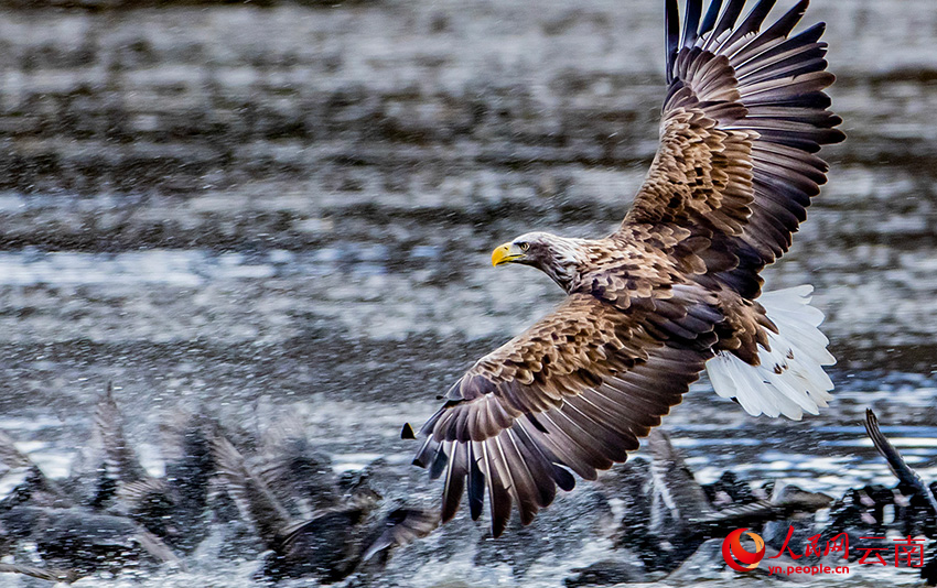 白尾海雕抓骨頂雞。彭建生 攝