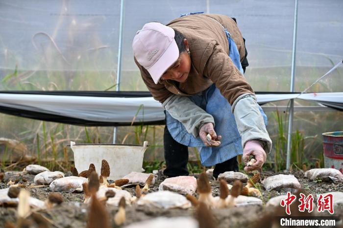 圖為農(nóng)戶采收羊肚菌。中新社記者 李嘉嫻 攝