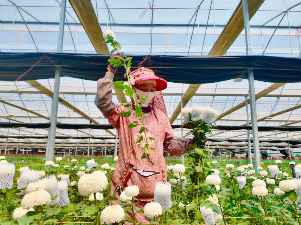 蓬勃發(fā)展的鮮花產(chǎn)業(yè)還催生助農(nóng)增收的聯(lián)農(nóng)帶農(nóng)機(jī)制,基地附近的村民不僅可以在基地里務(wù)工,還能通過(guò)流轉(zhuǎn)土地收取租金、參與農(nóng)民合作社分紅?!艾F(xiàn)在每個(gè)月采花收入能有3000元左右,加上土地租金每年總收入有5萬(wàn)多元?!被ㄞr(nóng)金麗純說(shuō),越來(lái)越多的村民選擇到花卉基地上班,實(shí)現(xiàn)家門口就業(yè)。