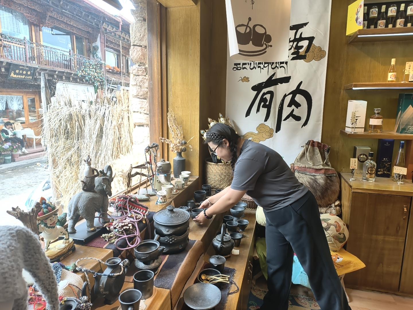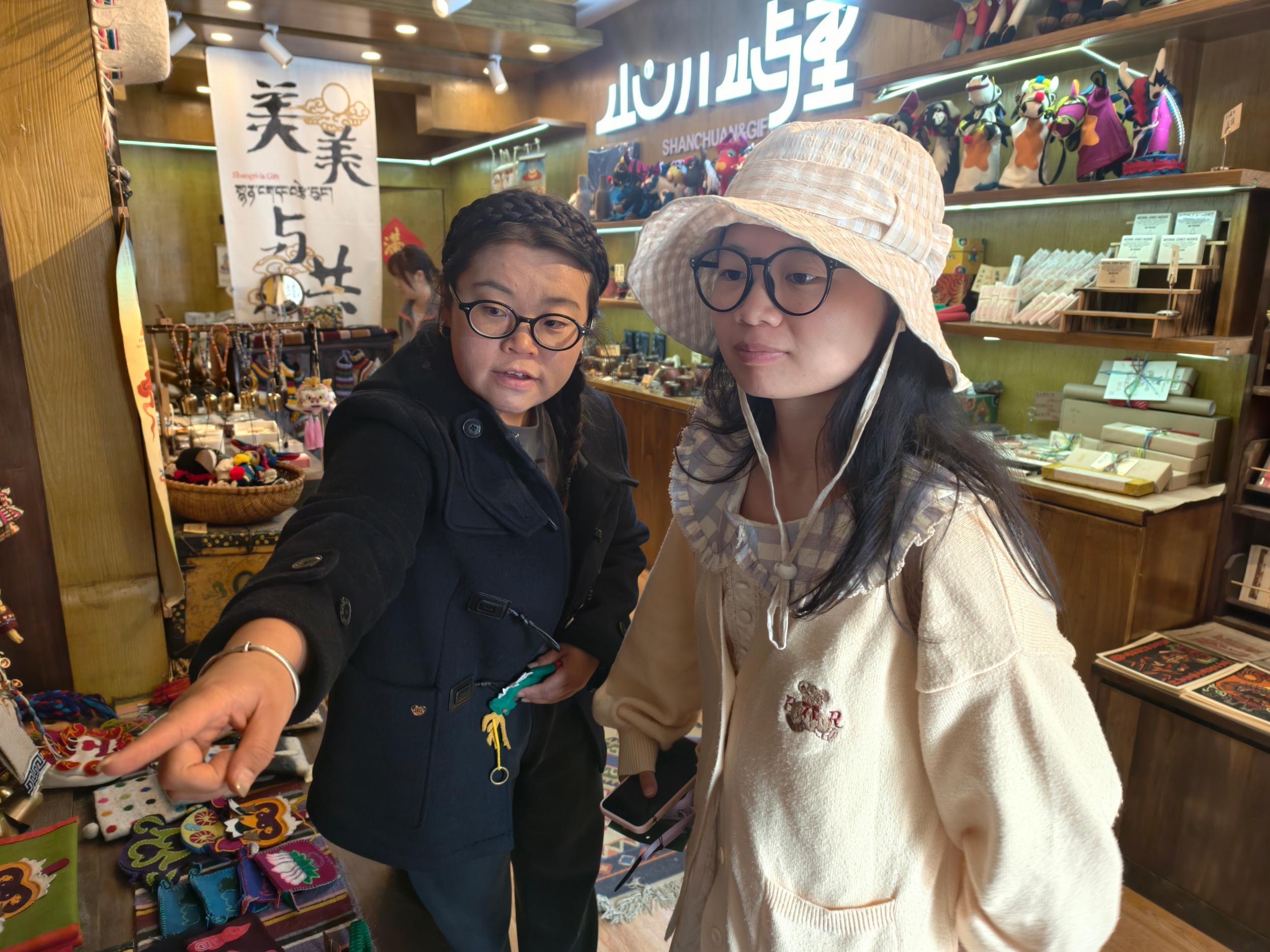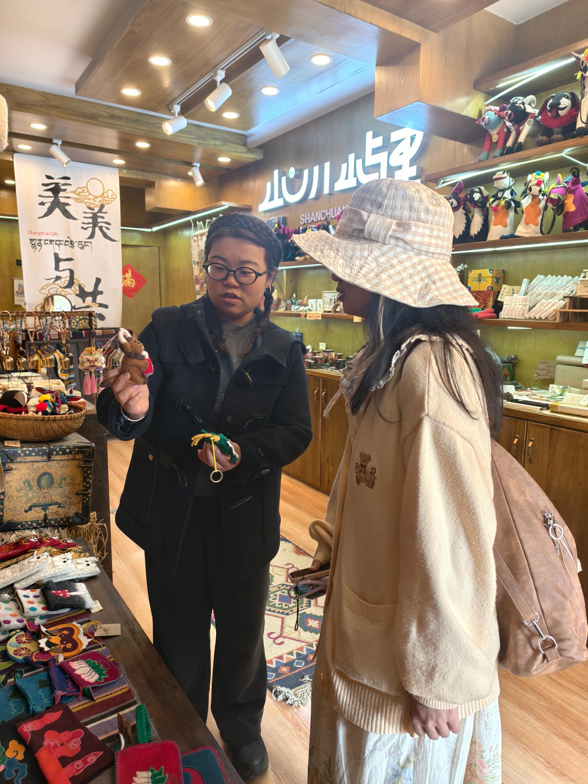 來自內(nèi)蒙古的店主王煒茜2021年到香格里拉游玩后,便愛上了這座獨(dú)具民族風(fēng)情的寧靜小城。她注意到一同游玩的朋友們買不到合適的、獨(dú)具香格里拉特色的紀(jì)念品,便有了親自開一家深耕于本地的文創(chuàng)品店的想法。