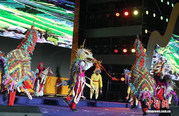 9月27日晚,迪慶州代表隊(duì)表演舞蹈《金雞馬鹿》。中新社記者 黃興鴻 攝