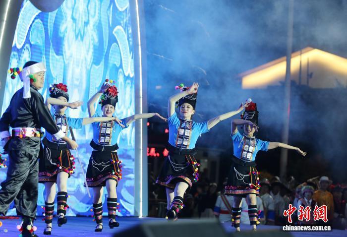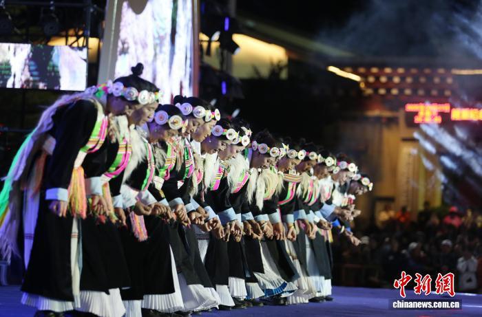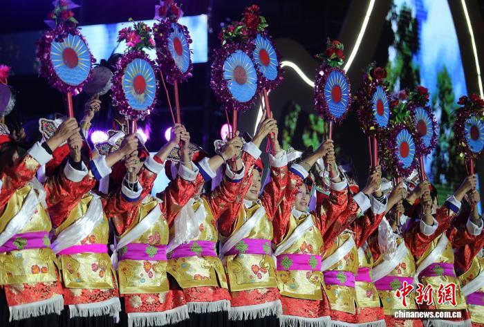 9月27日晚,迪慶州香格里拉市代表隊(duì)表演舞蹈《阿卡巴拉》。中新社記者 黃興鴻 攝