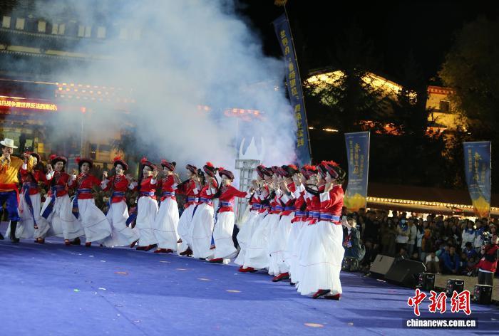 9月27日晚,麗江市代表隊(duì)表演舞蹈《幸福甲搓》。中新社記者 黃興鴻 攝