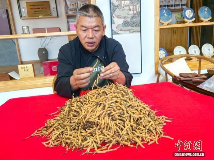 圖為和新海在分選蟲草。受訪者 供圖