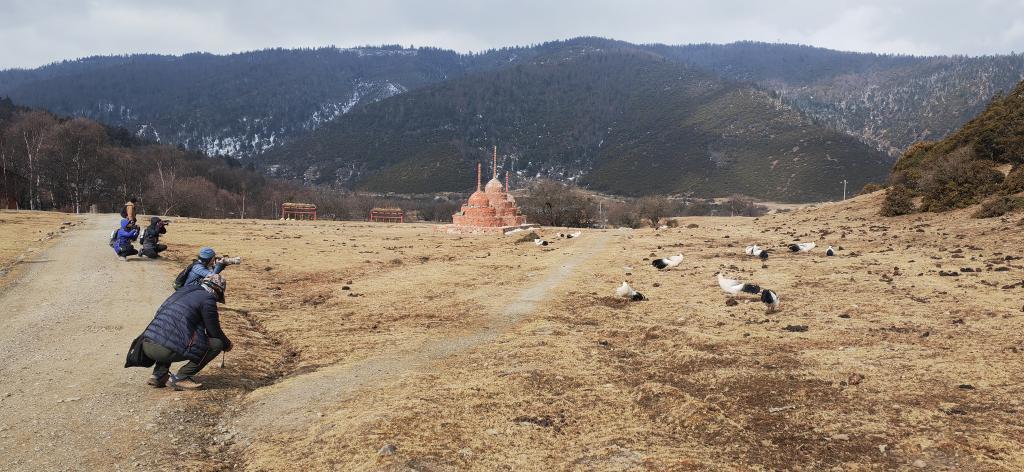 游客在普達(dá)措景區(qū)內(nèi)拍攝藏馬雞。新華社記者 浦超 攝