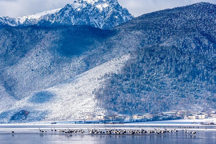 納帕海坐落于香格里拉市城區(qū)西北方向不遠(yuǎn)處,每年冬季都有許多候鳥到此棲息越冬。在這里,紅嘴鷗、斑頭雁、黑頸鶴等隨處可見,它們就在村子旁邊悠閑活動(dòng)。