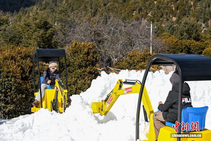 1月29日,小朋友體驗(yàn)雪地小挖機(jī)。中新社記者 李嘉嫻 攝
