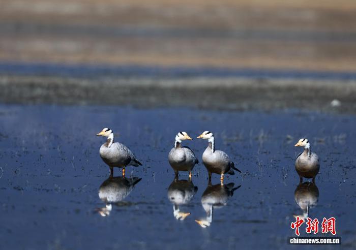 1月23日,4只斑頭雁在納帕海休憩。黃興鴻 攝