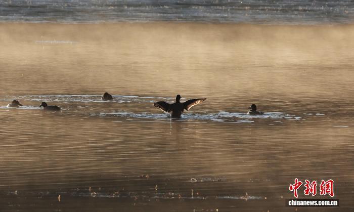 1月23日,5只候鳥在納帕海嬉戲。黃興鴻 攝