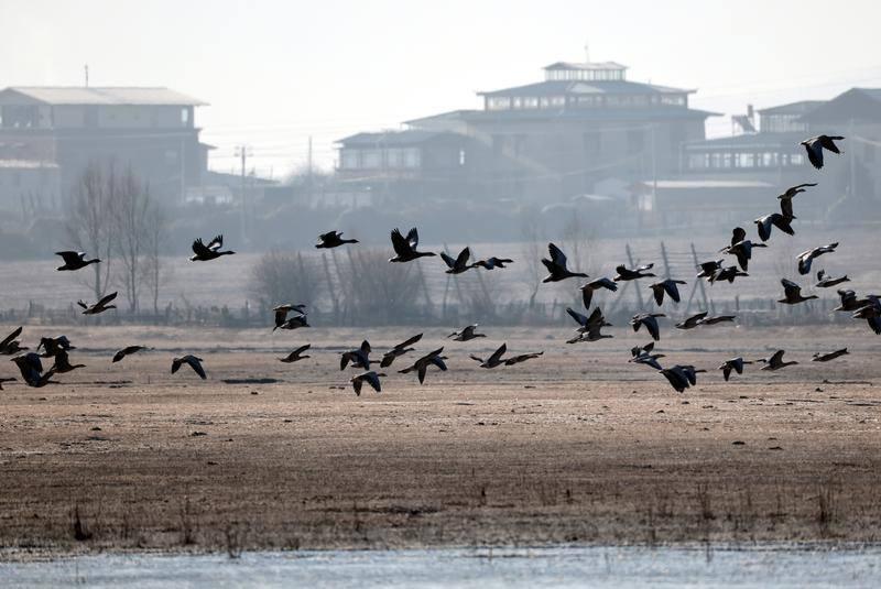各類野鴨在湖中巡游,展現(xiàn)出一幅萬物共生自然和諧的山水畫卷。