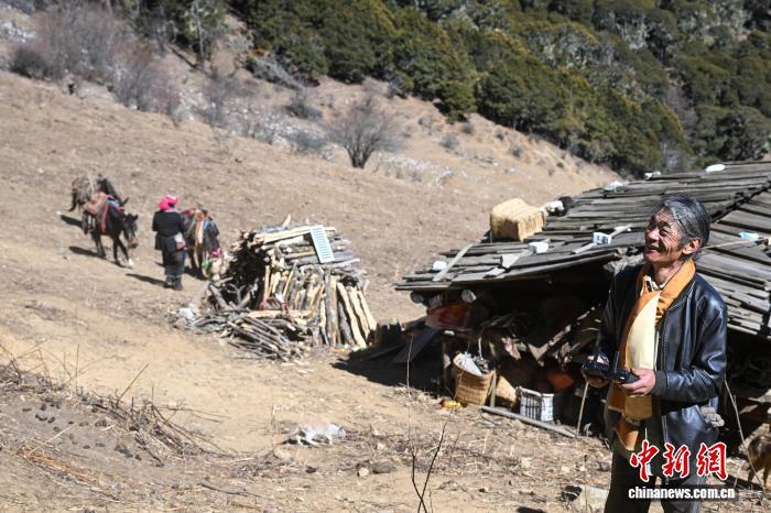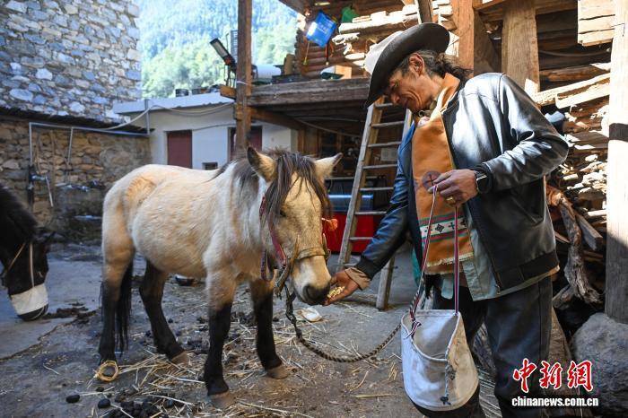 大年初一清晨,尼汝村的炊煙與雪山云霧一同升起。年近百半的丹增培楚(以下簡稱培楚)從屋里取出一個新買的馬糧袋,一邊喂馬,一邊向記者展示,“網(wǎng)上買的,好看又耐用?!彼€趕在春節(jié)前通過電商平臺置辦了一批年貨和農(nóng)具。