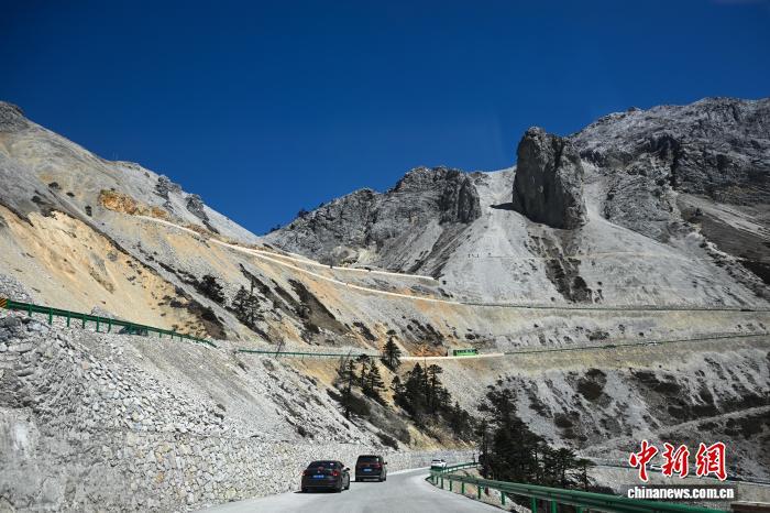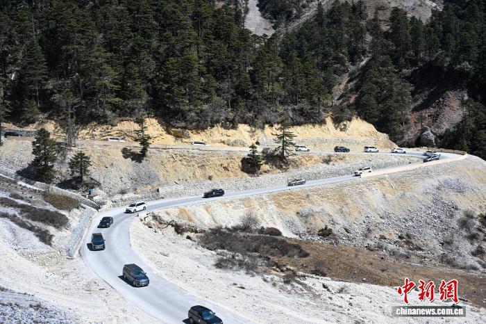 3月11日,參與自駕的車輛穿梭在高山峽谷間。中新社記者 李嘉嫻 攝