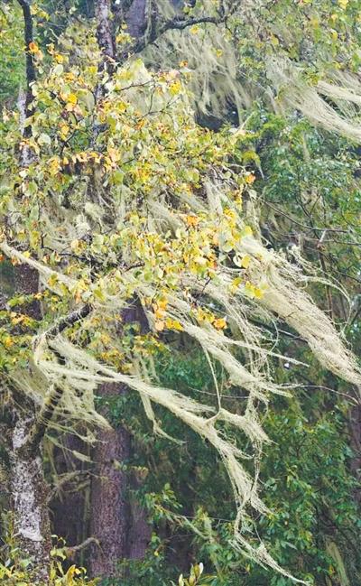 “那是‘樹胡子’!”向導王國仙說,“它是藻類和真菌的共生體,枝狀地衣的一種。”
