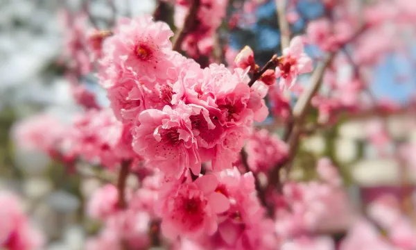 香格里拉市城區(qū):榆葉梅開(kāi)春意鬧