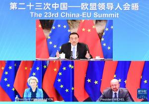 國(guó)務(wù)院總理李克強(qiáng)4月1日下午在人民大會(huì)堂同歐洲理事會(huì)主席米歇爾、歐盟委員會(huì)主席馮德萊恩共同主持第二十三次中國(guó)-歐盟領(lǐng)導(dǎo)人會(huì)晤。會(huì)晤通過(guò)視頻方式舉行。... [詳情]
