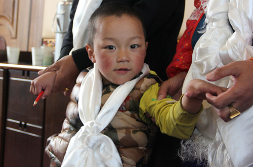5歲的次旦拉桑將和爺爺奶奶去北京治療 攝影:馬靜