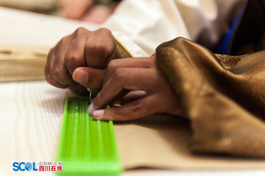 上完課,恩波就穿上白大褂,到樓下的按摩診所工作。而5個(gè)藏族盲人孩子則會(huì)在教室里做作業(yè),有時(shí)也要去學(xué)按摩技能。休息的時(shí)候,大家還會(huì)彈彈吉他、唱唱藏歌,對(duì)生活充滿了樂觀?!皬椉⒋岛J絲、拉手風(fēng)琴,都是爸爸教我們的?!?7歲的藏族盲人孩子買志巴說。恩波出生在阿壩州紅原縣壤口鄉(xiāng)一個(gè)牧民家庭,只上過小學(xué)四年級(jí)。1981年,一次意外事故,導(dǎo)致他雙目失明,從此與光明絕緣。在成都市牛市口一個(gè)盲人按摩醫(yī)院學(xué)習(xí)工作期間,他發(fā)現(xiàn),很多藏族盲人學(xué)生對(duì)漢語相對(duì)陌生,學(xué)習(xí)效率大打折扣,一個(gè)學(xué)期能完成的學(xué)業(yè),卻要連學(xué)兩期才勉強(qiáng)過關(guān)?!霸斐蛇@樣的學(xué)習(xí)困境,都是一個(gè)語言障礙所致。”恩波說,路易斯·布萊爾發(fā)明了“六點(diǎn)制凸點(diǎn)體系”盲文,我也希望成為藏族的路易斯·布萊爾,創(chuàng)編一套藏文盲文,讓藏區(qū)盲人學(xué)習(xí)更容易、更方便。