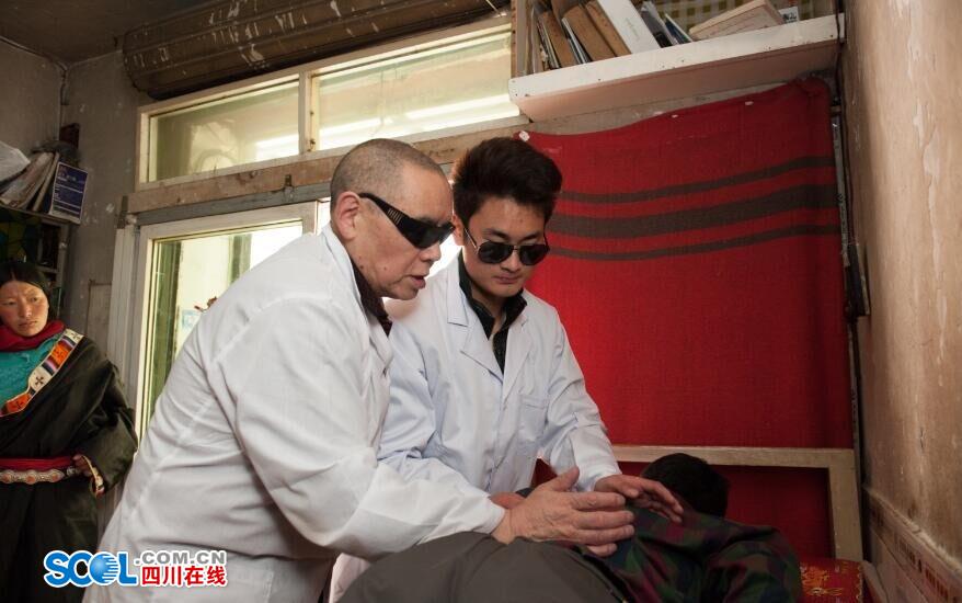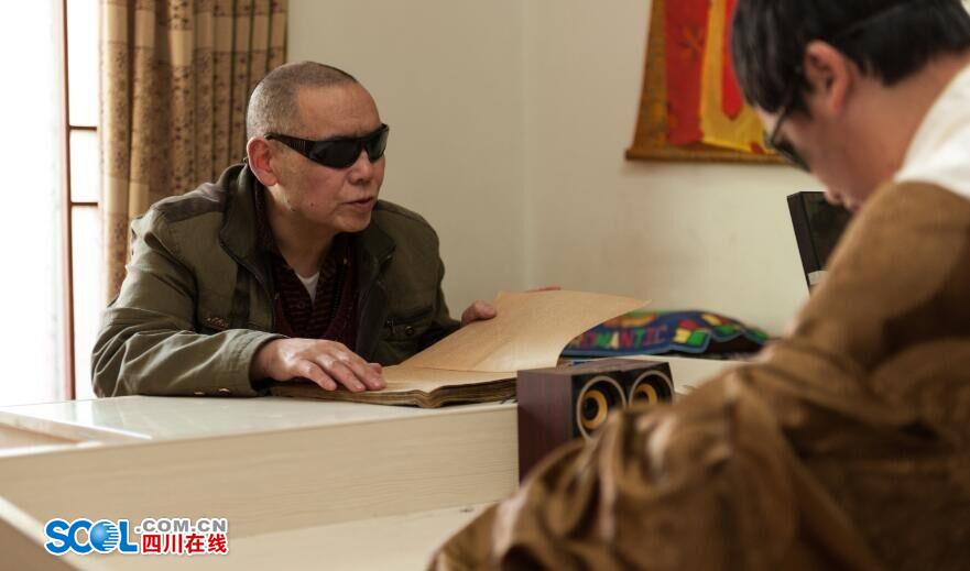 4月23日上午10時(shí),阿壩州馬爾康市步行街,一個(gè)不足8平方米的簡陋房間里,5個(gè)藏族盲人孩子正在用雙手“閱讀”藏文詩歌,之后還熟練地用錐筆、字板在盲文紙上進(jìn)行寫作練習(xí)。為他們上課的是一位藏族盲人按摩師,名叫恩波,今年已63歲,孩子們都親切地叫他“爸爸”。這5個(gè)藏族盲人孩子,都在20歲以下,是恩波從阿壩縣、壤塘縣招來的。眼下,他正在免費(fèi)教孩子們學(xué)習(xí)藏文盲文、盲人計(jì)算機(jī)技能操作、盲人按摩等知識(shí)和技能。