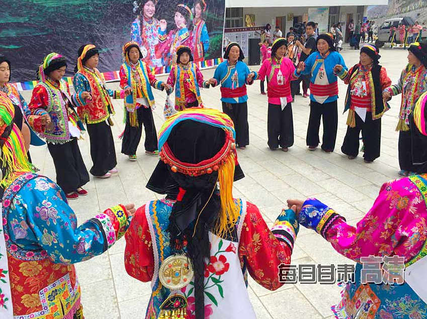 朝水完畢后,臧家姑娘跳起歡樂的舞蹈。