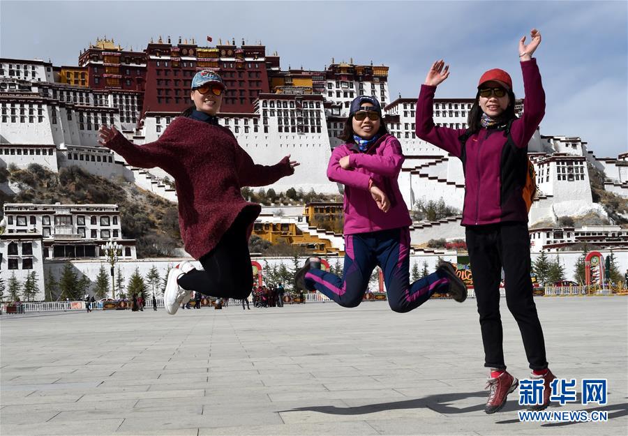 3月14日,游客在布達(dá)拉宮前拍照留影。近日,隨著氣溫轉(zhuǎn)暖,拉薩街頭的游客也多起來,即將迎來旅游的黃金季節(jié)。 新華社記者 覺果 攝