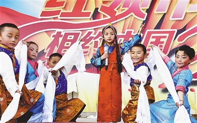 圖為拉薩市堆龍德慶區(qū)姜昆希望小學(xué)的學(xué)生們在西藏甘露藏藥股份有限公司文化展區(qū)觀看藏醫(yī)藥器材。圖為身著民族服裝的兩位小朋友正在舞臺上表演節(jié)目。圖為孩子們正在表演童裝... [詳情]