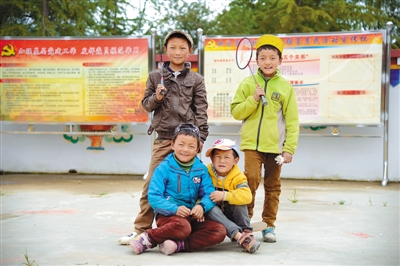 林芝市巴宜區(qū)珠曲登村小學(xué)生扎西多杰、普布次仁、貢秋羅布、白瑪旺扎在村委會(huì)玩耍。人民日?qǐng)?bào)記者 高沁 攝