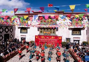 當日,西藏拉薩市城關區(qū)在八廓街老大院夏扎內(nèi)開展迎春節(jié)藏歷新年主題活動,來自大院附近的多民族居民一起載歌載舞,迎接春節(jié)、藏歷新年。... [詳情]